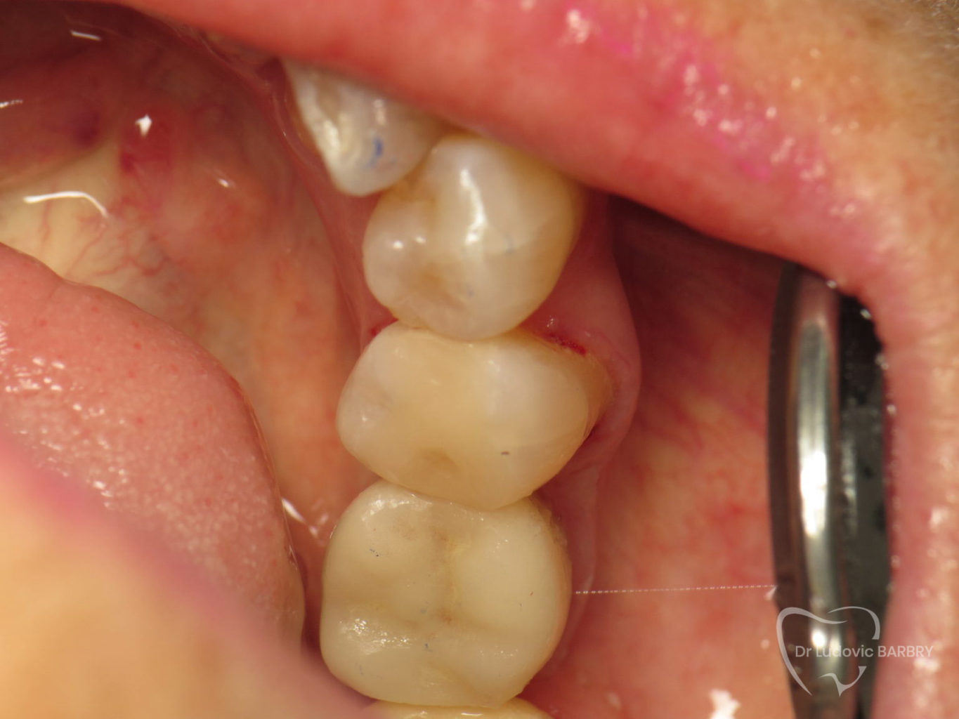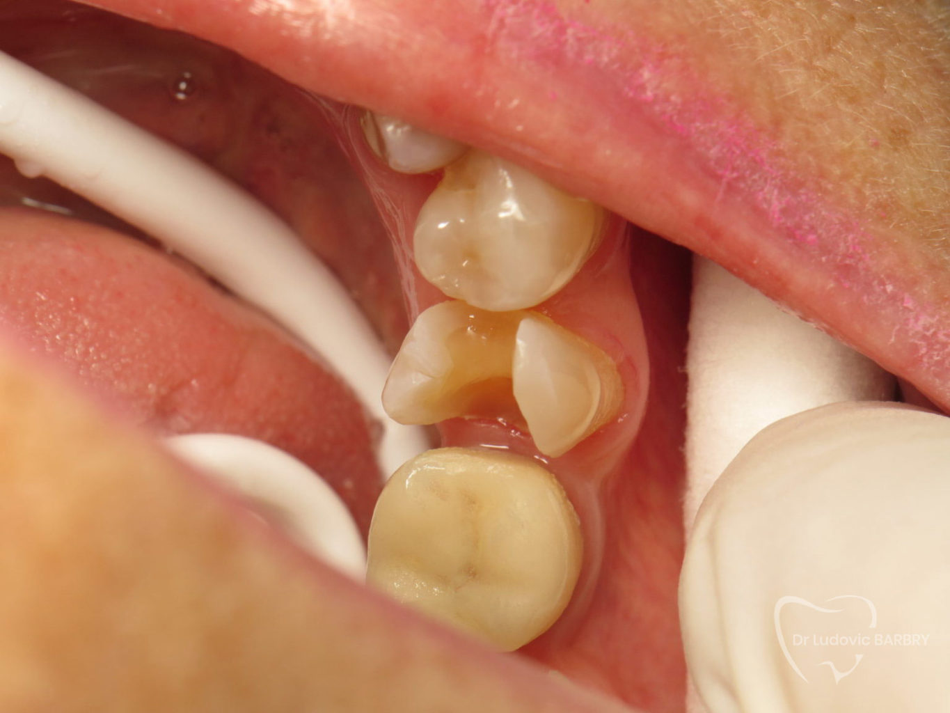 - D’anciens « plombages » ou couronnes mal ajustés favorisant la rétention de débris alimentaires et de la plaque dentaire.