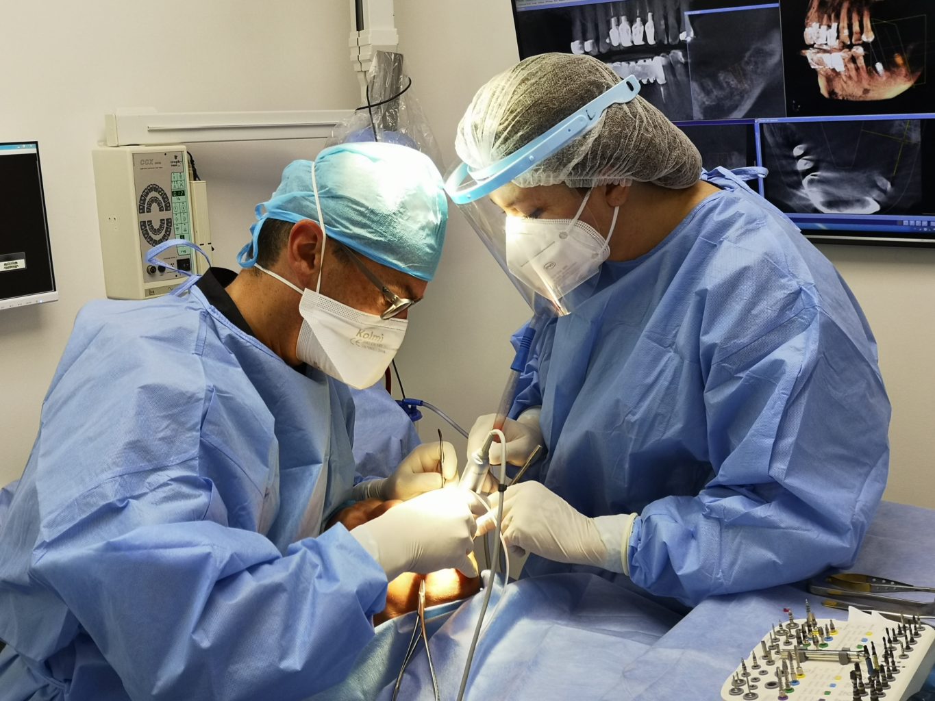 Grace à une expérience clinique de plus de 25 ans, l’intervention sera rapide et respectera un protocole d’aseptise rigoureux. Nous pouvons vous proposer les interventions simples comme la pose d’un seul implant mais également des réhabilitations totales associées si nécessaire à une greffe osseuse.